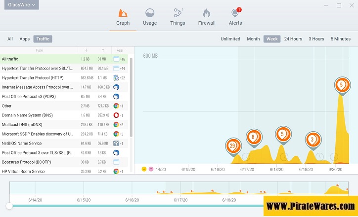 GlassWire Lifetime License is a network security and monitoring solution that integrates with a firewall. It provides internet security, bandwidth usage monitoring, remote server and internet privacy protection. Simply check the appropriate box on the list to control which applications can connect to the internet and exchange data. This software also allows you to see how many internal network transactions have provides the ability to display the total number